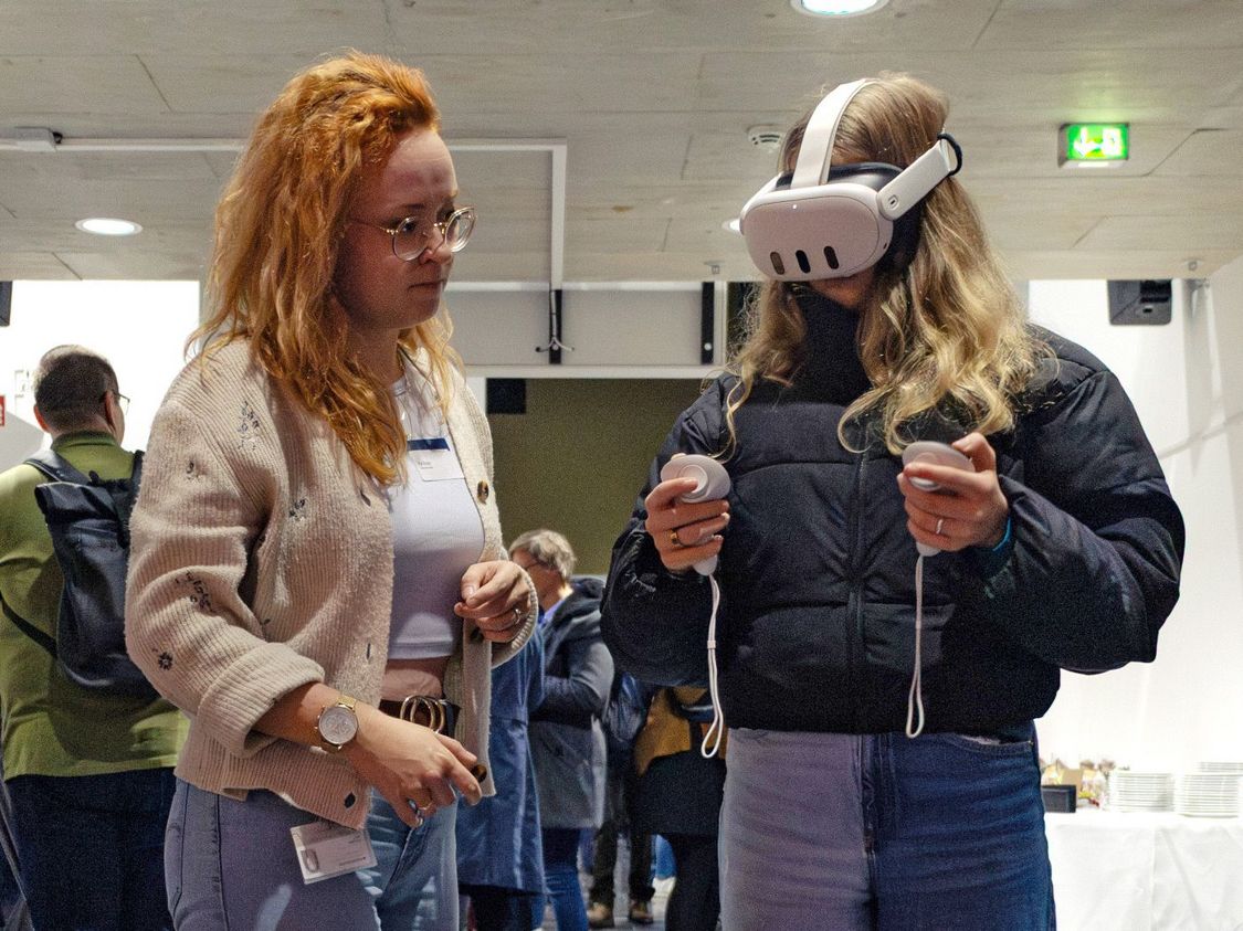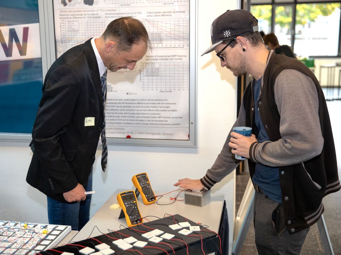 Während einer halbstündigen Pause sowie im Anschluss an den Showteil konnten die Gäste im Foyer noch tiefer in die Welt der Wissenschaft eintauchen. So konnten Lehrinhalte mittels VR-Brille erlebt, ein von Studierenden und Alumni entwickeltes Lernspiel gezockt und ein deutschlandweit einzigartiger Fahrsimulator ausprobiert werden. Darüber hinaus wurde an Ständen zu den Bereichen Gründungsunterstützung, Promotion und Forschungskooperationen informiert. Zudem gab es bei einem Get-together mit Buffet und Musik ausreichend Zeit für anregende Gespräche.