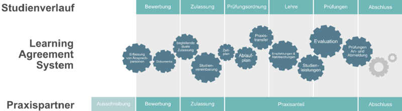 dualLSA ist mit dem Projekt „Learning Agreement Web System (LAWS)“ vernetzt. Ziel ist die digitale Unterstützung der Lernorte-Kooperation sowie die strukturierte Abbildung von Ablaufmodellen. Das Learning Agreement Web System (LAWS) soll als zentraler Anlaufpunkt für die Lernorte-Kooperation und als eine digitale Plattform zur Verwaltung und Dokumentation des dualen Studiums dienen. Die Plattform vernetzt relevante Akteure digital und unterstützt eine nachhaltige Informations- und Kommunikationsstruktur für Akteure im dualen Studium, indem es wesentliche Funktionen für Studierende, Studiengangskoordinatoren und Praxispartner (Unternehmen/Behörden/Kammern) zur Einsicht und zum Austausch studienrelevanter Informationen bereitstellt.