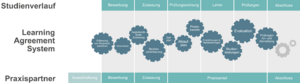 Dual Studierende schließen einen Vertrag mit einem Praxispartner. Hochschule und Unternehmen kooperieren verbindlich bei der Ausgestaltung der Praxisphasen.