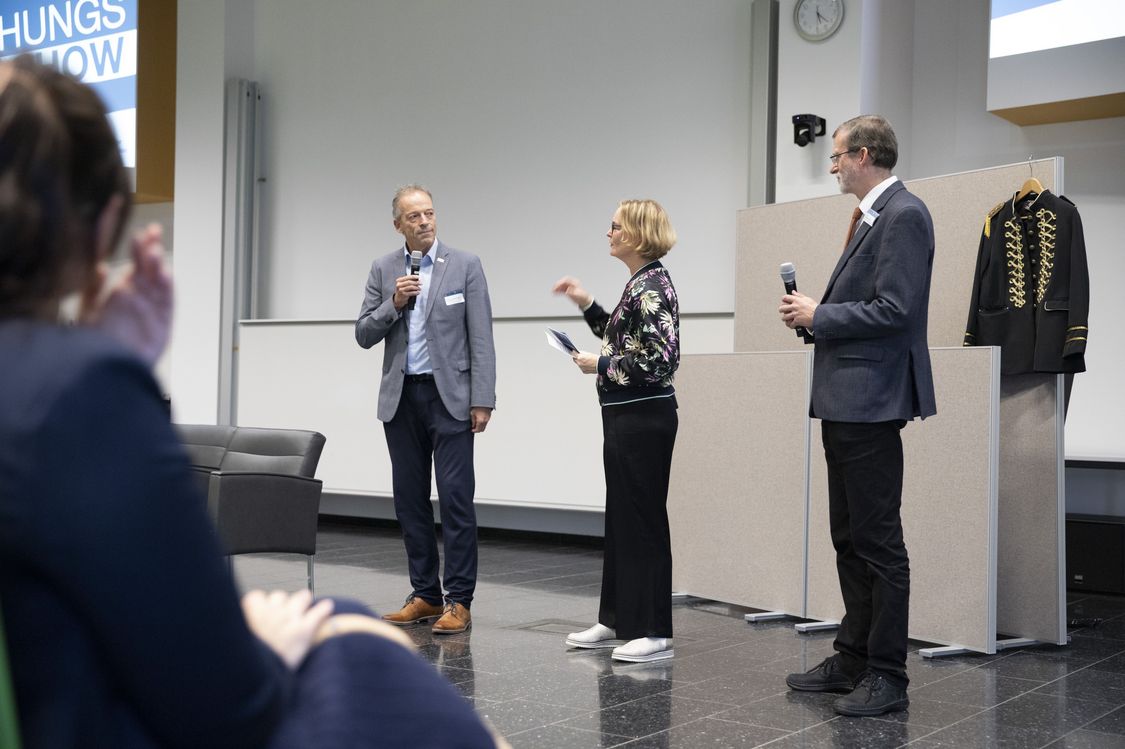 Ein zentrales Thema war zudem die Frage, wie Wissenschaft und Politik gemeinsam den Klimaschutz vorantreiben können. „Ich freuen mich sehr, dass wir für eine Diskussionrunde zu diesem aktuellen Anliegen neben Prof. Dr. Andrea Heilmann und Prof. Dr. Hardy Pundt als Wissenschafts-Experten der Hochschule Harz auch zwei Vertreter aus der Politik gewinnen konnten“, betont Frieder Stolzenburg „Mit ihrem Blick aus der Macher-Perspektive haben Immo Kramer, Leiter des Dezernats Stadtentwicklung in Wernigerode, und Prof. Dr. Armin Willingmann, Minister für Wissenschaft, Energie, Klimaschutz und Umwelt des Landes Sachsen-Anhalt, der die Forschungsshow auch mit einem Grußwort eröffnete, zu einem inspirierenden Austausch beitragen.“