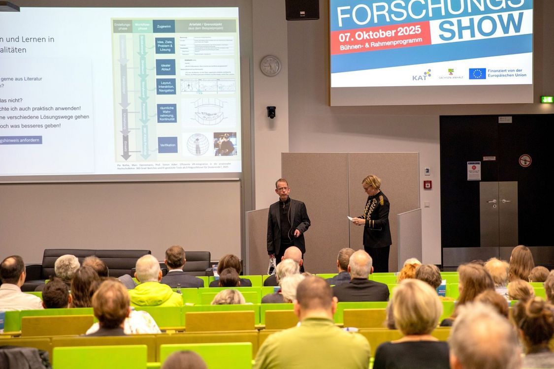Die Hochschule Harz hat nach siebenjähriger Pause die Tradition einer Forschungsshow wieder aufleben lassen und am 7. Oktober 2025 alle Wissensjäger, Erlebnissucher und Zukunftsvisionäre zu einem abwechslungsreichen Event auf den Wernigeröder Campus eingeladen. Unter dem Titel „Wissen erleben. Zukunft gestalten.“ wurde von 17 bis 21 Uhr im Audimax und dem Foyer ein Bühnen- und Rahmenprogramm mit spannenden Fakten zu Forschung und Wissenschaft an der Hochschule Harz bei gleichzeitig hohem Unterhaltungswert und Mitmachfaktor geboten. Durch das Programm führte Marija C. Bakker, die unter anderem im WDR-Radio das Wissenschaftsmagazin Quarks und die Literatursendung Westart Lesen moderiert.