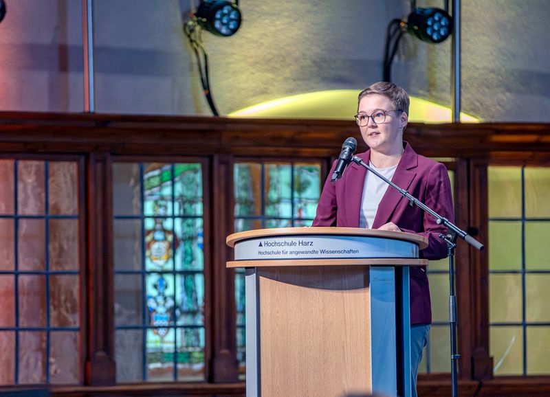 Angela Gorr, Mitglied des Landtages Sachsen-Anhalt und Vorsitzende des Förderkreis Hochschule Harz e.V., verlieh im Anschluss die vom Verein ausgelobten Preise für herausragende Abschlussarbeiten. Ausgezeichnet wurde Zahra Faour, Absolventin der Wirtschaftspsychologie, für ihre Bachelor-Arbeit „Hype, Exklusivität und ihre Wirkung auf die Produktattraktivität: Eine experimentelle Untersuchung der psychologischen Bedürfnisse nach Zugehörigkeit und Individualität“. Sky Must, Absolvent des Master-Studiengangs Business Consulting, erhielt den Preis für seine Arbeit mit dem Titel „Der Einfluss umweltschutzorientierter Benefits auf die externe Arbeitgeberattraktivität gegenüber Fachkräften“.