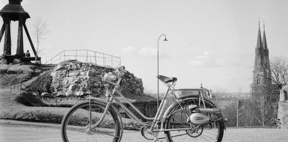 Headergrafik: Motorfirma Sixten Wesslén - reklam för cykelmotor, Uppsala 1952 von Uppsala-Bild - Upplands Museum, Sweden - CC BY-NC-ND.