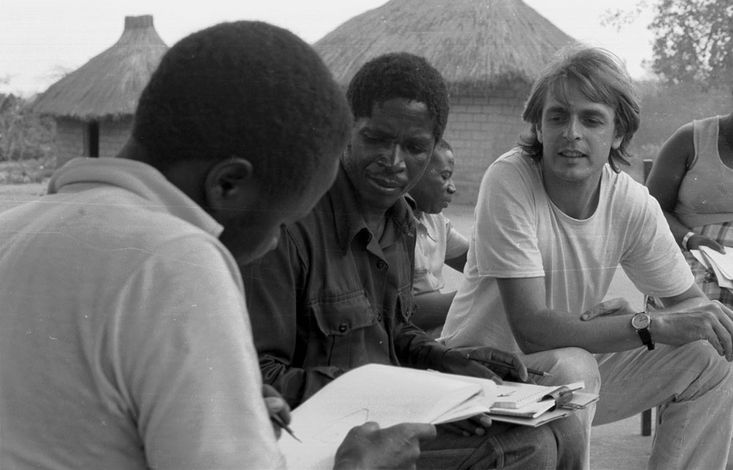 Drei Monate lang durchquerte er das „platte Land“ im afrikanischen Sambia und schulte Grafiker des dortigen Landwirtschafts- und Gesundheitsministeriums. „Wir wollten u.a. die Bevölkerung beim Bau von Brunnen unterstützen. Das war nur visuell möglich, mit schriftlichen Instruktionen hätten wir den hohen Anteil von Analphabeten nicht erreicht.“ Högerle saß stundenlang mit den Bauern vor ihren Hütten, skizzierte, wie sie ihre Familien und ihr Dorf sehen. „Wer nicht lesen kann, folgt auch bei der Betrachtung von Zeichnungen keiner vorgegeben Reihenfolge. Gemeinsam entwickelten wir Visualisierungen wie im Mittelalter: Das wichtigste im Zentrum, rundherum kleinere Abbildungen“. Es folgte ein Projekt in Peru, wo er und drei seiner Freunde mithilfe eines Comics die indigene Bevölkerung für den Schutz der Vikunjas, einer wildlebenden Lama-Art, sensibilisierten. „Erstmals standen die Indios selbst im Mittelpunkt, wurde ihre Geschichte nicht aus der Sicht der Weißen erzählt“, erklärt der Weltenbummler.