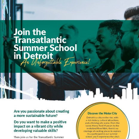 Detroit offers a unique learning environment. Known for its industrial history, vibrant cultural scene, and ongoing revitalization, the city allows students to explore urban sustainability from many perspectives. Guided tours, site visits, and cultural activities help participants discover the city’s complexities and understand the social, environmental, and economic issues shaping Detroit today.